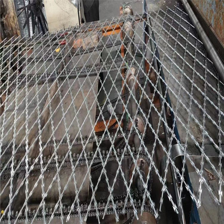工程案例 焊接型刀片刺繩網(wǎng)片是先把刀片刺繩成型之后裁成所需網(wǎng)片直條的長(zhǎng)度經(jīng)網(wǎng)片機(jī)焊接成刀刺網(wǎng)片,孔型有長(zhǎng)方形、正方形與菱形均可定做。材質(zhì):芯線(xiàn)優(yōu)熱鍍鋅鋼絲;板材為熱鍍高鋅或者不銹鋼板材。也可以表面噴塑或者涂塑,以達(dá)到更好的防腐耐酸堿的作用,延長(zhǎng)使用年限??讖酱笮。?/span>5X10、10x15、10x20cm(其他網(wǎng)孔可以根據(jù)客戶(hù)需求定做)。