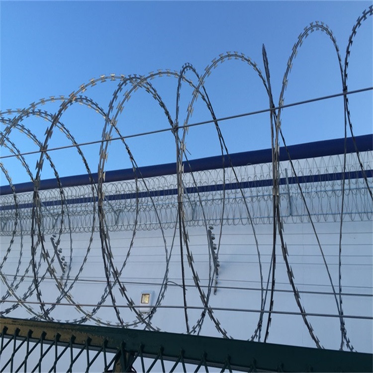 我們平時見到的金屬隔離網頂部都會加裝蛇腹形刀刺網,這個設計主要是在隔離網一層防攀爬效果的基礎上面,再多一道‘安全墻’,這種刀刺網都是利用鋼板沖出刀片來,用專制卡扣固定在一起。兩個圈用卡扣固定,這樣拉伸開才是連貫一圈一圈固定在一起。也可以拉直焊接成網片使用,尺寸:長度和寬度可以根據(jù)客戶需求進行制作,一般常見的長度為2-3米,寬度為1.5米-2.5米。可以根據(jù)不同的用途搭配立柱合邊框進行自由組合。網孔可設計菱形或者方形,材質常見的有不銹鋼、熱鍍鋅等,不同的材質可根據(jù)環(huán)境和使用條件選擇。焊接刀片護欄網作為一種高效的防護設施,其產品規(guī)格和結構特點的不同組合可以滿足不同的使用需求,適用于工廠、學校、軍事基地、機場、大型活動場地等各種需要防護的場所,是一種重要的安全配置。