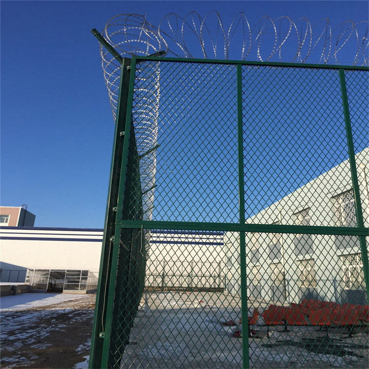 3.結(jié)構(gòu):隔離網(wǎng)的結(jié)構(gòu)應(yīng)簡單、堅固,方便施工和維修。建議采用突出型排列,這樣可以提高囚犯從外面攀爬的難度同時,需要考慮隔離網(wǎng)與地面的連接,確保固定穩(wěn)固。網(wǎng)墻設(shè)計建設(shè)應(yīng)美觀、實用;蛇腹形刀刺網(wǎng)刀片鋒銳防銹,外形有直接的震懾作用。應(yīng)具備抗剪切、防攀爬功能,防腐抗銹功能。隔離網(wǎng)的顏色應(yīng)與周圍環(huán)境協(xié)調(diào),一般采用墨綠色。