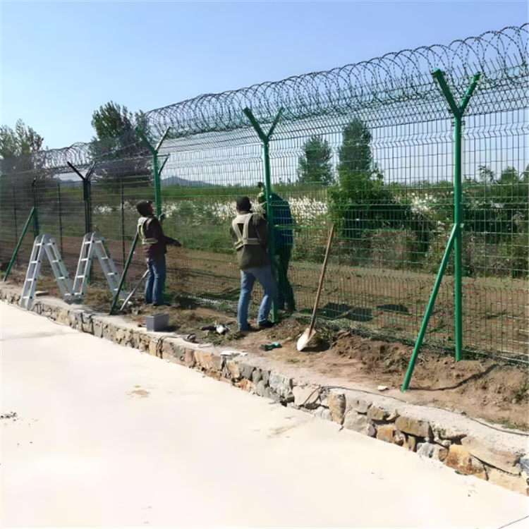 新聞動態(tài)機場圍界、機場鋼筋圍界、Y型安全防御護網(wǎng)不僅是一種簡單的防護網(wǎng)和隔離網(wǎng),它還可以設(shè)置在公路、橋梁、廠區(qū)、邊境等多個地方,能夠起到維護交通秩序,防止交通意外的發(fā)生和美化城市樣貌的功能。對于機場建設(shè)公司來說,機場鋼筋網(wǎng)圍界是必不可少的選擇!它不僅可以根據(jù)需求定制不同規(guī)格尺寸的產(chǎn)品,還能提供合理的圍界解決方案,讓機場更有安全感!機場鋼筋網(wǎng)圍界它采用高強度低碳鋼絲焊接,具有較高的強度和安全防御性級別,還可以在頂部加裝刀片刺絲、刀片刺繩,讓安全防護性能更上一層樓!它具有很好的防腐、抗曬、耐候等特點,而且防攀爬能力極強,使用時間長、堅固耐用,是圍界建設(shè)的首選。?橫向四道折彎加強筋不僅增加了網(wǎng)面的強度,還極具美感。?
